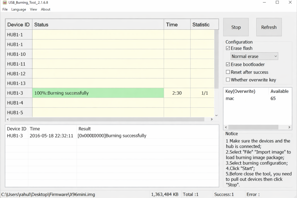 Using the Amlogic USB Burning Tool is not complicated once you understand the flow. Load the firmware, put the box in burning mode, hit Start, and wait. I flashed my X96 Mini in about 5 minutes and it came back to life like a brand new device. If you follow each step carefully you should have no issues at all.