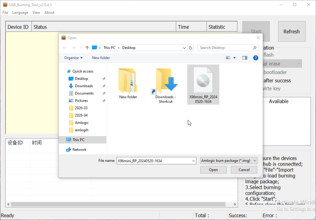 • Your firmware file (.img format) — I used the X96 Mini firmware